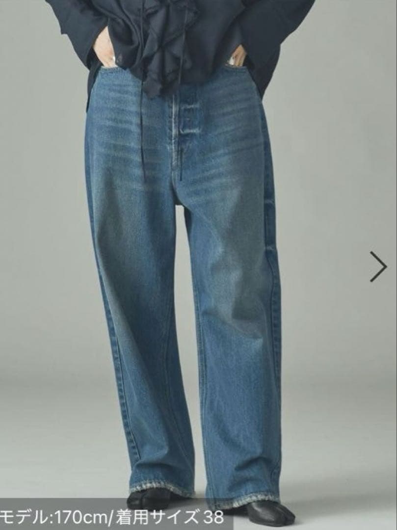 2025年に新宿ルミネにて購入しました。1度のみの着用になります。(1時間ほど)柔らかめで履きやすいお品かと思います。※お色については1〜7枚目のお写真が近いかと思います。※定価 31,900円▪️ご返品は受け付けておりませんのでご了承の上でのご購入をお願いいたします。太めのルーズシルエットが新鮮なデニム。ラフなシルエットながらも、腰のハリやヒップの丸さが出ないよう、シャープさにこだわった1本。後ろの裾にはダーツを入れシルエットをつくり込む事で、ルーズ過ぎない絶妙なシルエットに。履き始めから5.6回履いたかのような驚くべき柔らかさと、トップスを何合わせても決まる程よいビンテージ感が人気の理由です。